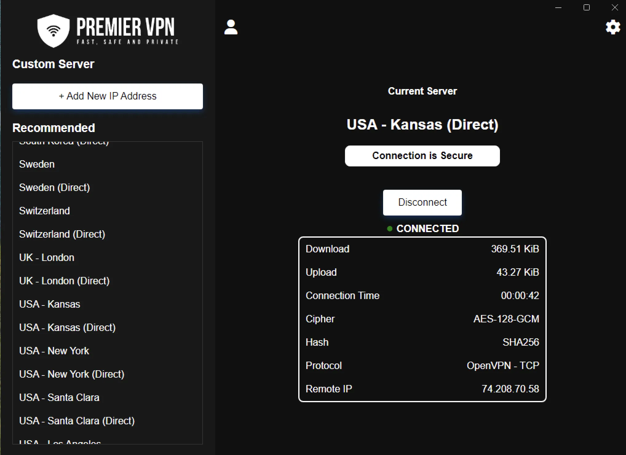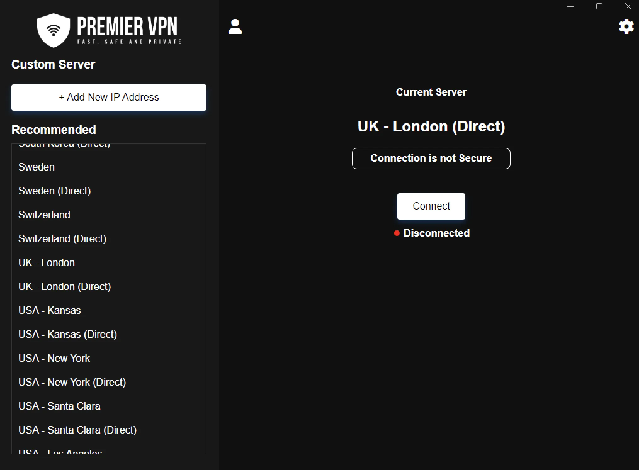 Mes teikiame paslaugas keliose pagrindinėse vietose visame pasaulyje. Pasirinkite artimiausią vietą, kad gautumėte geriausią ryšį. Pastaba: jei įprastas ryšys nutrūksta, naudokite tiesioginį ryšį. Tai apeis jūsų interneto paslaugų teikėjo DNS blokavimą.
