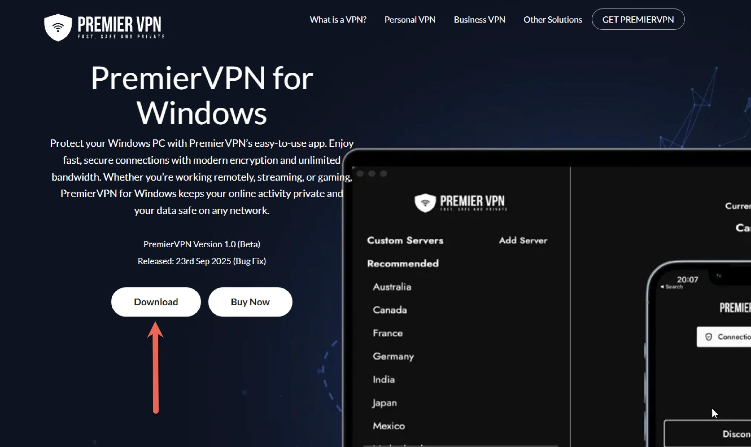 Norėdami gauti „PremierVPN Windows“ programėlę ir įdiegti vos keliais žingsniais, naudokite žemiau esantį mygtuką „Atsisiųsti“.