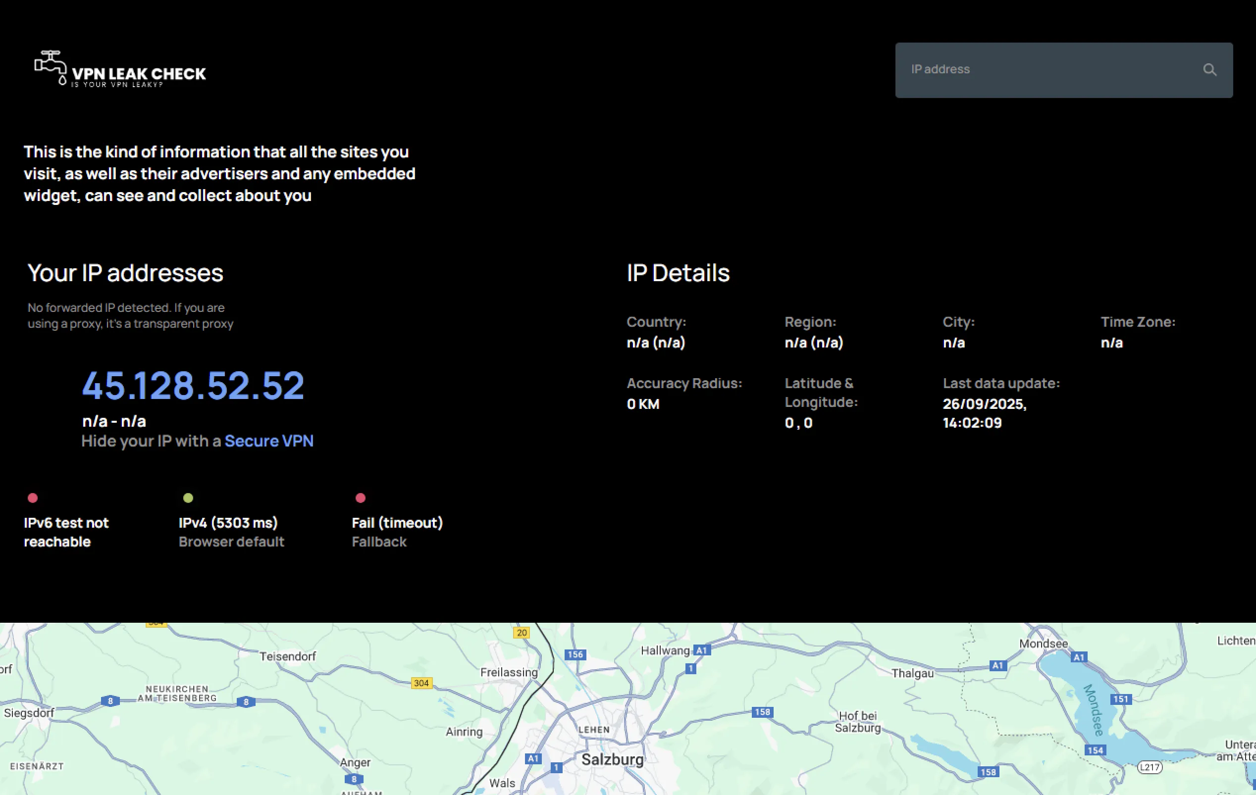 Dar kartą patikrinkite, ar jūsų IP pasikeitė prisijungus prie VPN. Apsilankę IP tikrinimo svetainėje spustelėdami toliau esantį mygtuką pamatysite savo VPN IP.